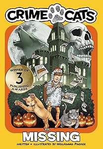 Missing is the first volume in the Crime Cats book series, written and illustrated by Wolfgang Parker. Young teen Jonas Shurmann works as a volunteer at his mother’s veterinary surgery. While he doesn’t mind helping out his mother, Jonas is certainly not a fan of cats. He believes cats are spoiled, treat humans abysmally, and have no manners. As he carries a feline patient into one of the consulting rooms, Jonas hears yelling. He pokes his head out and sees a man in the reception area, desperate to put a notice on their board regarding his newly missing cat. It isn’t until the notice is pinned to the board that Jonas realizes how many cats are actually missing, as the board is completely covered with notices from frantic owners. The following day, Jonas is bullied for a chicken costume his father had bought for him for the Halloween dress-up at school. During a scuffle on the way home, one of his school books is thrown into the yard of the neighborhood’s haunted mansion. As he tries to retrieve it, Jonas hears a voice nearby. When he looks up, Jonas is surprised to see the one-eyed cat, Neil Higgins, which he had been carrying to his mother’s consultation room the previous day. Neil tells Jonas to return at midnight and help investigate the feline disappearances, all of which point to the haunted house. When Jonas teams up with Neil Higgins and his investigative sidekick, CatBob, their investigations lead them directly to the haunted mansion, but nothing can possibly prepare them for the shocking secrets within.